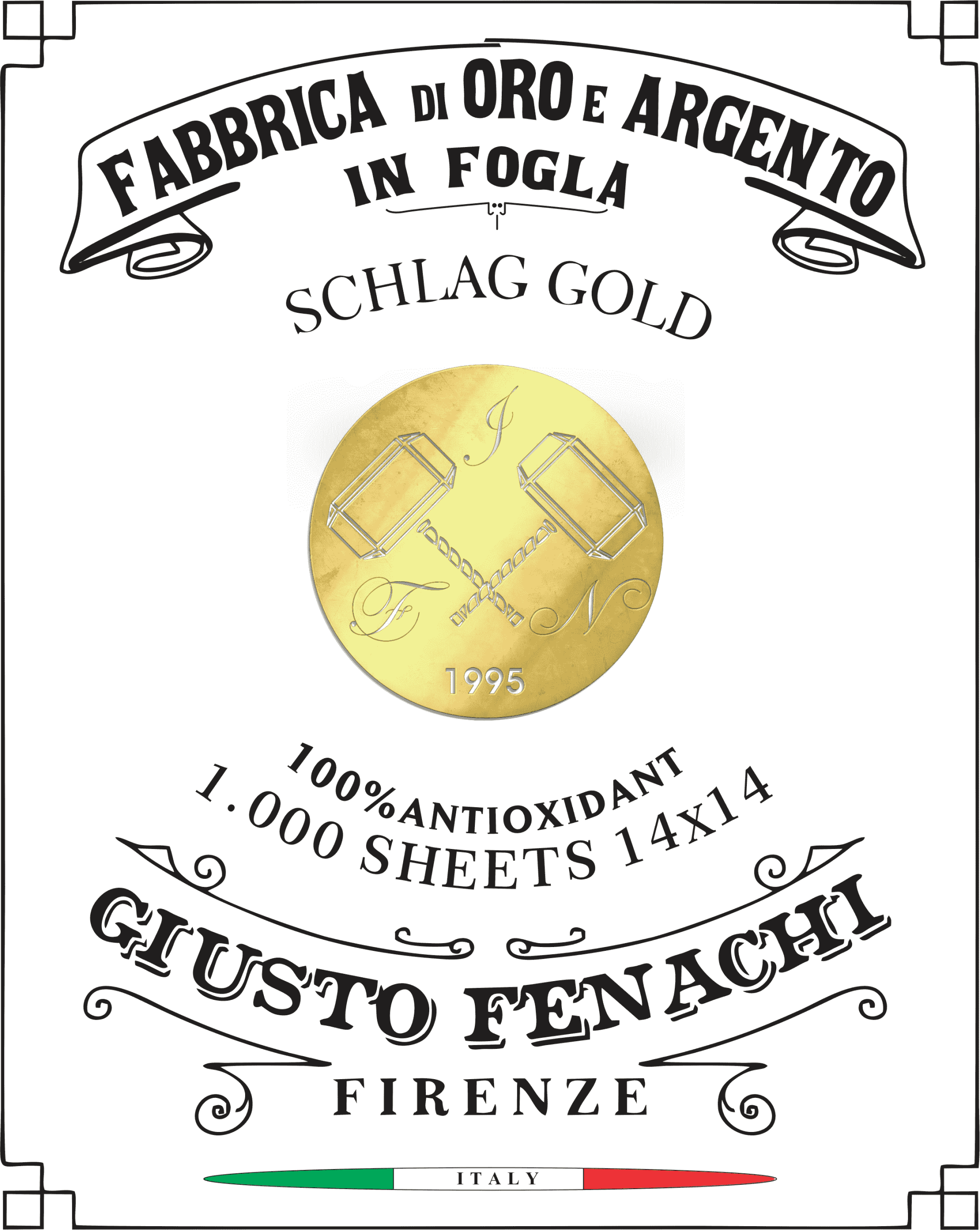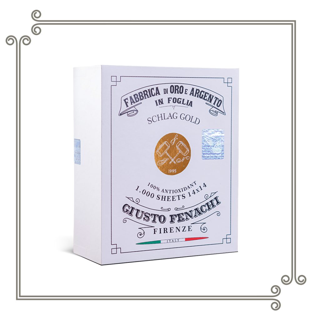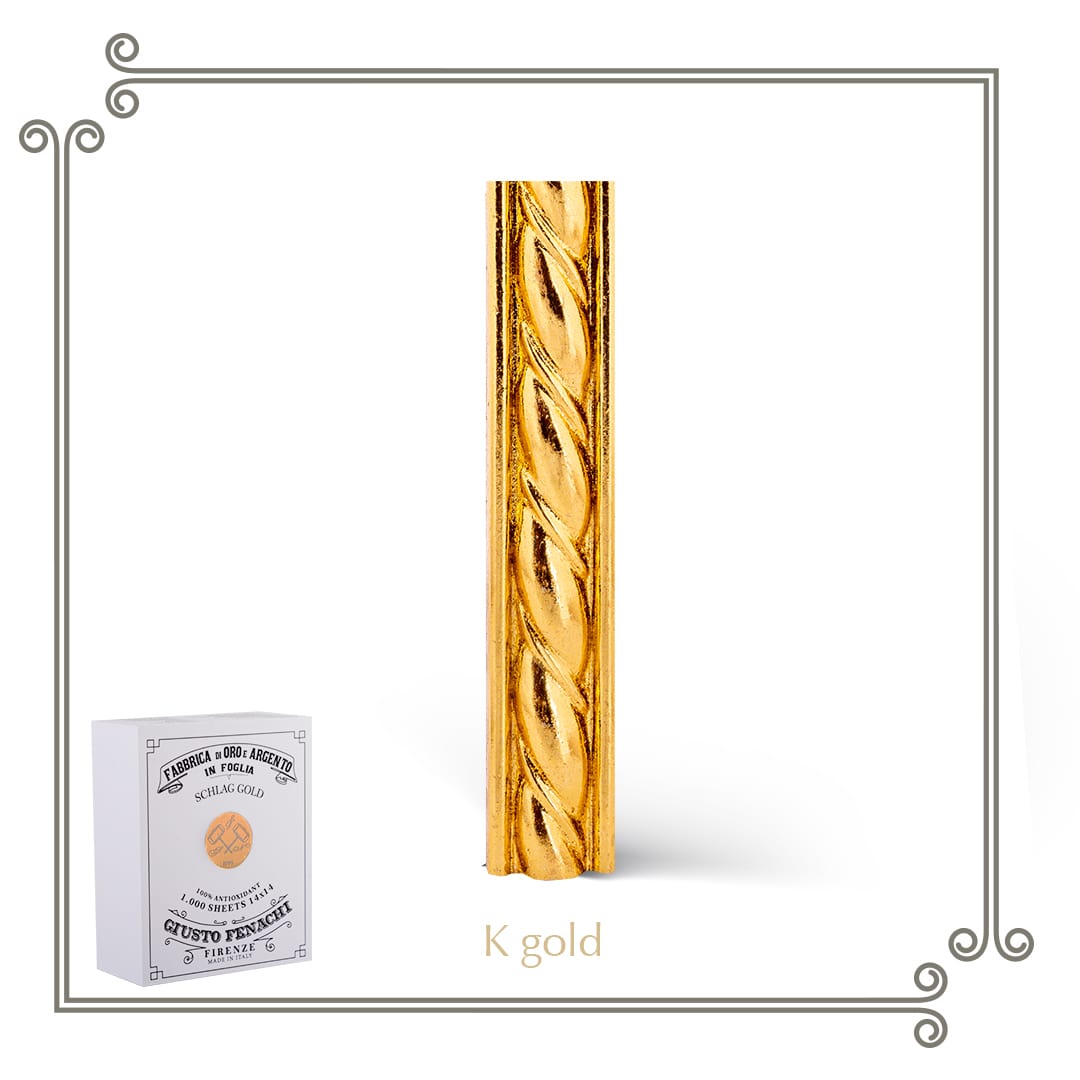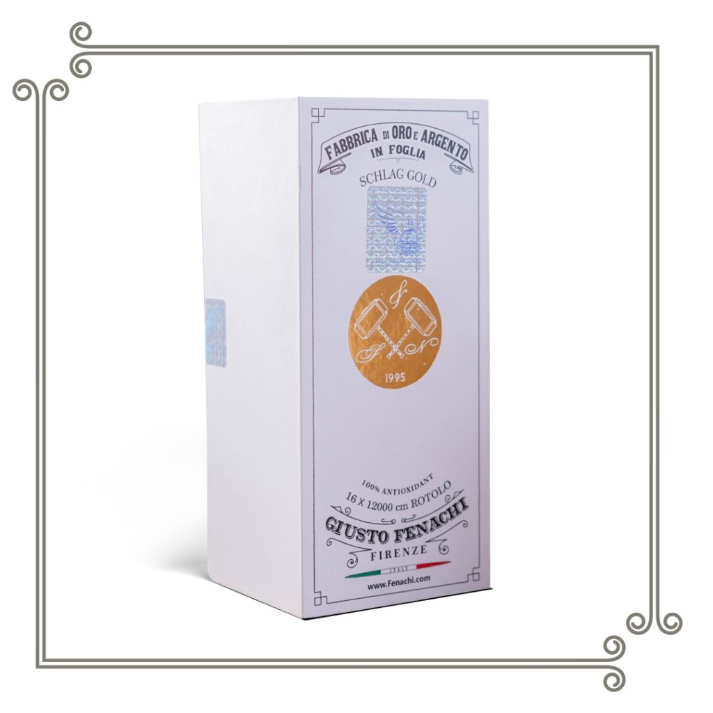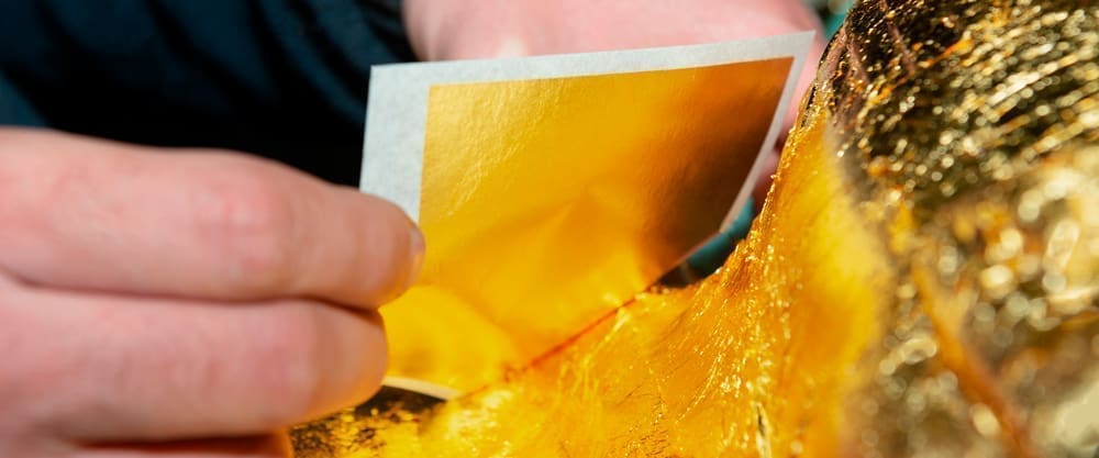 ورق طلای خالص (۲۴ عیار) که ماندگاری و درخشش بالایی دارد.